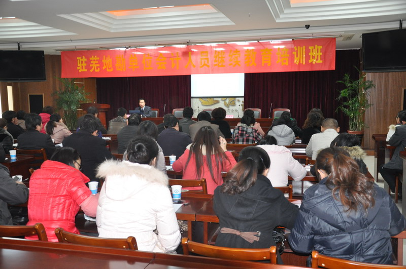 为提高财务人员的业务知识和会计水平,2012年12月7日下午,驻芜地勘单位会计人员继续教育培训班在安徽省地勘局人才培训中心(二水)18楼正式开课。驻芜地勘单位核勘总院、二水近40名持证会计人员参加了培训。局财务处正处调研员黄长辉、市地税大桥分局王科长为大家讲课。